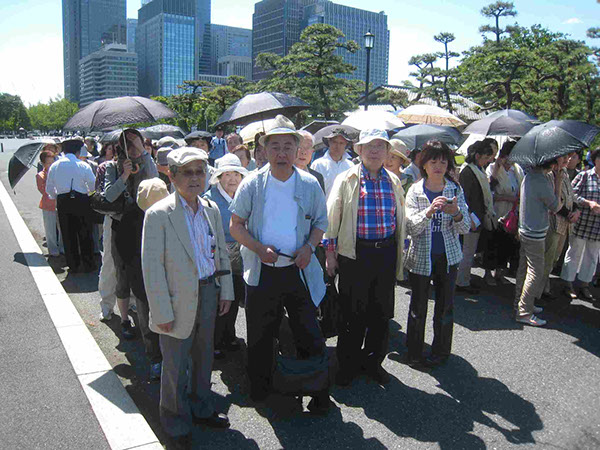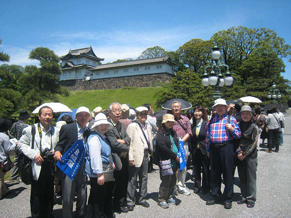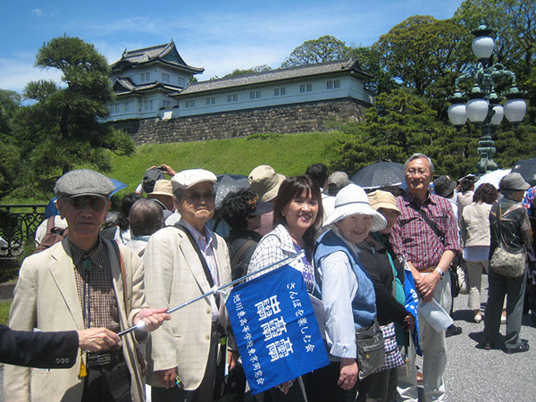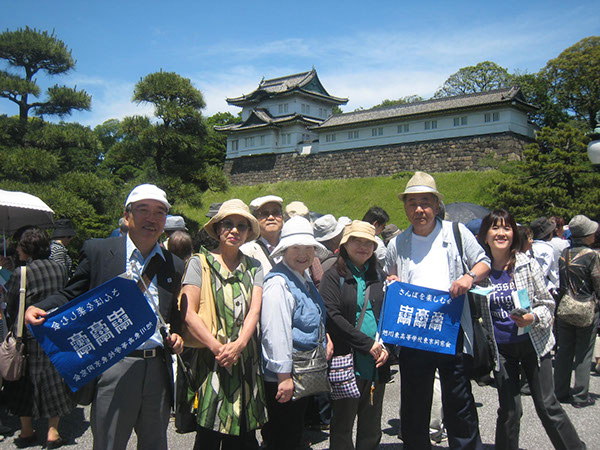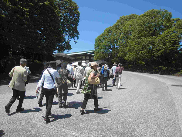 5月23日、旭川東高等学校東京同窓会第8回「さんぽを楽しむ会」は、「皇居参観と外堀虎の門・山王日枝神社」コースを、東高7期から27期までの総勢19名の参加で実施しました。当日はさわやかな初夏を思わせる陽気のさんぽ日和に恵まれました。今回も第3回より続いてわかりやすい説明が好評の郷土史家渡辺功一さんのご案内です。