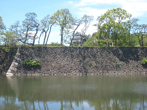 10時15分過ぎ、いよいよ出発。案内は宮内庁の制服の方です。国会議事堂のモデルとなった元枢密院庁舎を右手に見ながら富士見櫓へ。途中の石垣の石には薩摩藩の家紋が刻まれていました。富士見櫓は明暦の大火(振袖火事)の後万治2年(1659)に再建され、天守閣が再建されなかったため、その代用とされたといわれています。