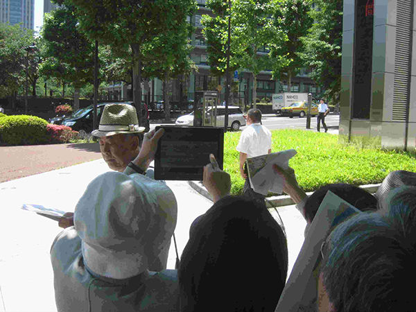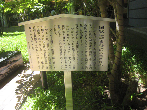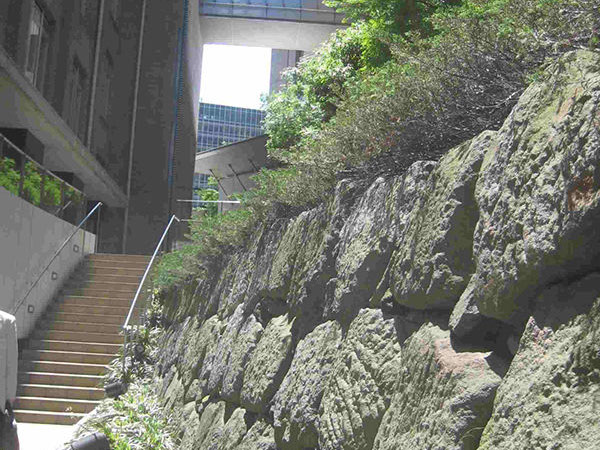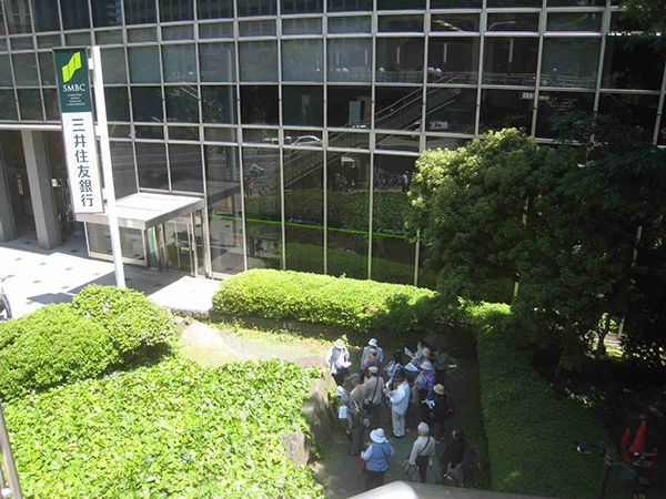 ここからは、渡辺さんの案内で街歩き。桜田門を出て桜田通りを通り、霞が関、潮見坂を経て虎の門へ。さざれ石のある文部科学省などが入る合同庁舎では、その工事で出た石垣を見学。現在の東京大学工学部の前身にあたる元・工部大学校跡を示す記念碑もありました。今は埋め立てられてない外濠、商船三井ビルは濠の跡地に建つなど、なかなか今のビル街から江戸の町を想像するのは難しいと思いました。溜池が外濠兼用の上水源であったなど、いまでは地名のみがよすがとなっています。