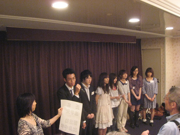 和田事務局長(東高20期)の司会のもと、高木会長(東高20期)の開会挨拶に始まり、白倉顧問(東高1期)の歓迎挨拶と乾杯の御発声で宴に入ると、昨年当番期を担当した幹事さん(東高33期)に司会がバトンタッチされ、新同窓生を一人一人紹介し、本人には抱負や将来目標などを大いに語って戴きました。嬉しくも今年も昨年並みに新同窓生の出席人数が多かったのですが、個性に溢れた内容と表現豊かなスピーチやパフォーマンスを次々と披露され、熱心に聴き入っている先輩諸氏が目立ちました。
