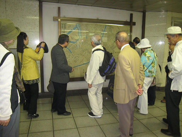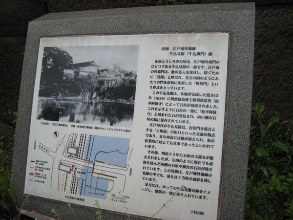午前10時30分にJR飯田橋駅西口を出発。江戸時代の面影を残す外堀の牛込御門の石垣と牡丹を眺めながら江戸の街探訪へ。牛込濠・飯田濠を眺めセントラルプラザ地下の地図を見ながら牛込神楽坂界隈の昔をしのび、揚場町など往時の水運の記憶をとどめる町名の説明に一同感心しました。