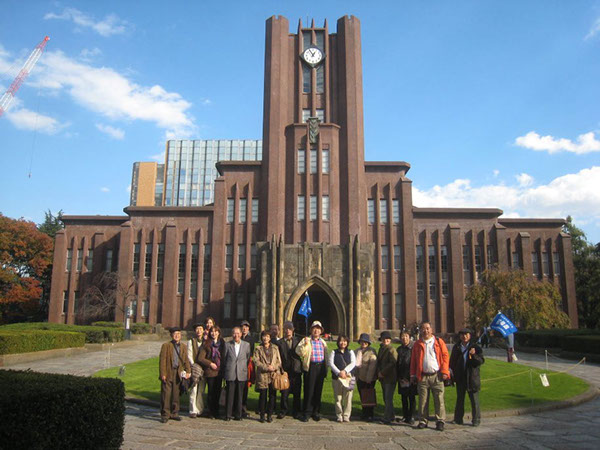 都会の真ん中とは思えない静かな佇まいの麟祥院から、東京大学へ。赤門から構内へ入り、加賀前田百万石の大名庭園の面影を残す三四郎池を眺め、安田講堂へ向かい、そこで記念撮影。昼食は本郷三丁目の福園酒家で、リーズナブルながら美味しい中華とアルコールを満喫しました。