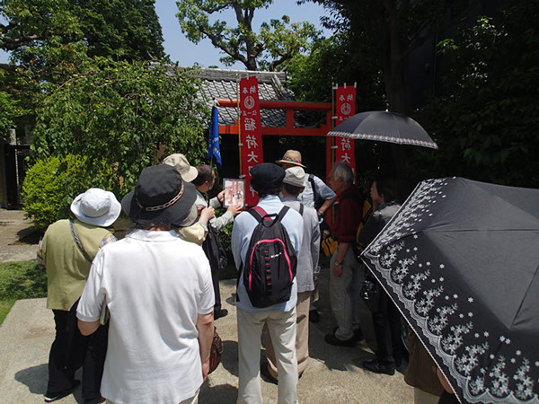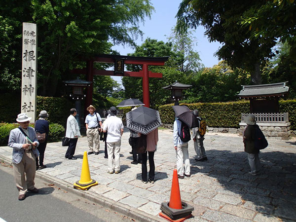 5月22日、旭川東高等学校東京同窓会第10回「さんぽを楽しむ会」は、下町の風情が残る「谷根千(谷中・根津・千駄木)」コースを、東高7期から27期までの総勢12名の参加で実施しました。当日はさわやかな初夏を思わせる好天に恵まれ、10回目の記念すべき会も楽しいひと時となりました。今回も第3回より続いてわかりやすい説明が好評の郷土史家渡辺功一さんのご案内です。