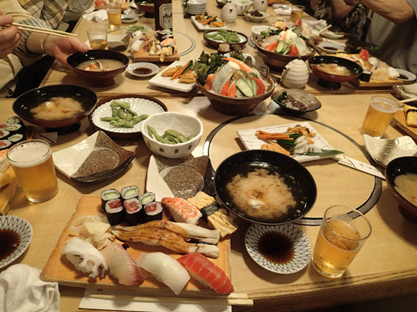 昼食は西日暮里駅近くの「玄海寿司」。おいしいお寿司に冷えたビールと枝豆、サラダ、ぶり大根、ホタルイカの沖漬けなどなど。15期朝比奈幹事の交渉力で、リーズナブルでボリュームたっぷりの昼食をいただきました。
