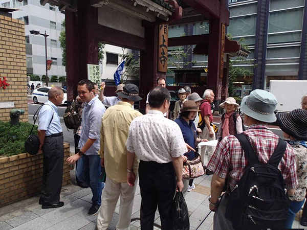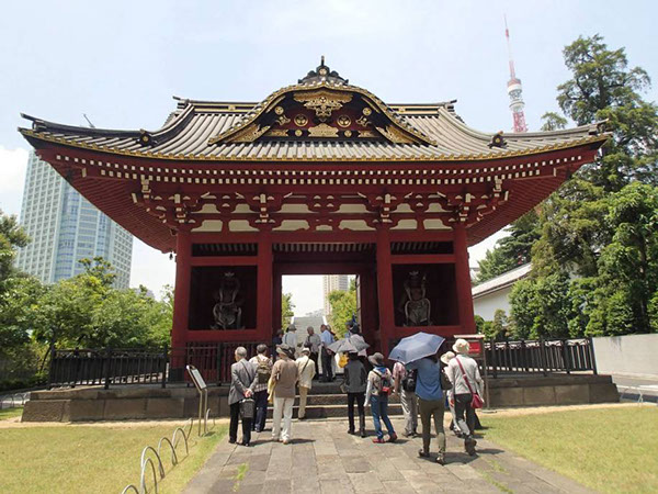 5月28日、旭川東高等学校東京同窓会第12回「さんぽを楽しむ会」は、「増上寺・旧芝離宮恩賜庭園周辺」の文学歴史散歩を、東高1期から27期までの総勢19名の参加で実施しました。当日は初夏のやや汗ばむ陽気ではありましたが、日陰を吹く風がさわやかなさんぽ日和でした。今回も第3回より続いてわかりやすい説明が好評の郷土史家渡辺功一さんのご案内です。