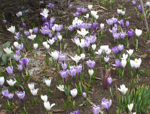 どこの家にもクロッカスの花が咲き誇っています。