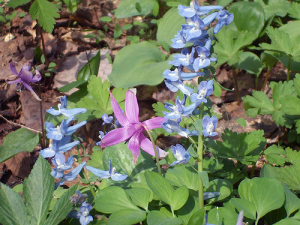 野草が群生する突哨山には、カタクリ・エゾエンゴサク・ニリンソウなどが満開