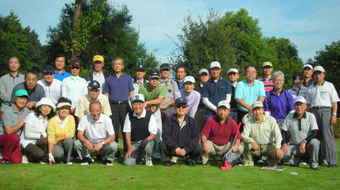 毎年春と秋に開催しているゴルフ同好会のコンペは、2010年10月3日(日)に千葉県野田市の野田パブリックゴルフ場けやきコースで開催されました。第28回となる今回で特記すべきは奥方共々ご参加いただけた会員が3名いらっしゃいました。旭中41期の大先輩から東高35期までの総勢30名の参加により盛大に行われました。全体を2派に分け3組ずつアウト、イン同時にスタートし上位入賞を目指して競いました。