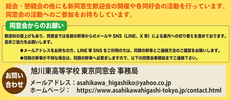■東京同窓会へのお問い合わせ、総会・懇親会などの参加申込み等は、こちらのメールフォームから。