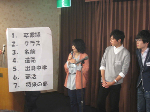 宴の後半には、”新同窓生と先輩のペアの年齢合計数当てゲーム”が全員参加で実施され、大いに盛り上がりました。