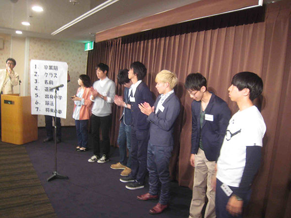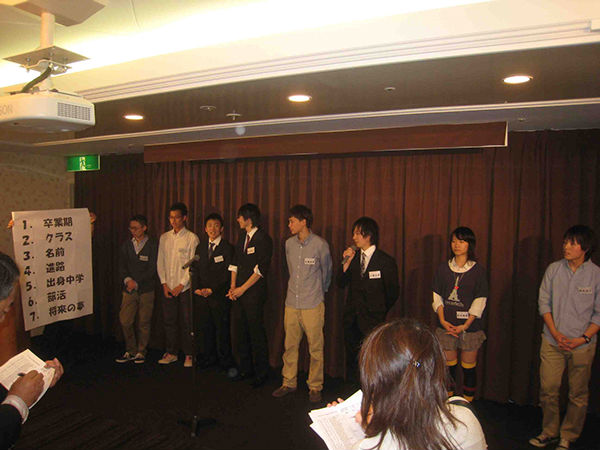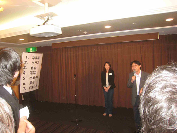 和田事務局長(東高20期)の司会のもと、高木会長(東高20期)の開会挨拶に始まり、白倉顧問(東高1期)の歓迎挨拶と乾杯の御発声で宴に入ると、昨年当番期を担当した幹事さん(東高33期)に司会がバトンタッチされ、新同窓生を一人一人紹介し、本人には抱負や将来目標などを大いに語って戴きました。嬉しくも今年も昨年並みに新同窓生の出席人数が多かったのですが、個性に溢れた内容と表現豊かなスピーチやパフォーマンスを次々と披露され、熱心に聴き入っている先輩諸氏が目立ちました。