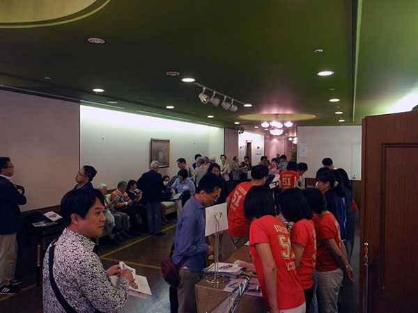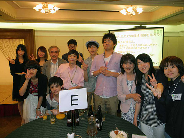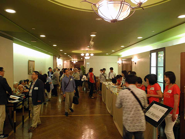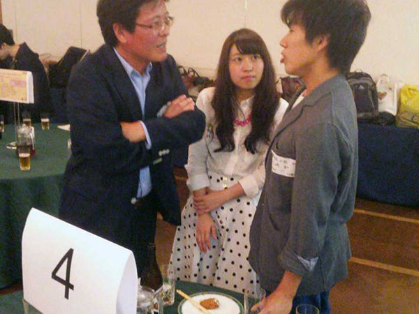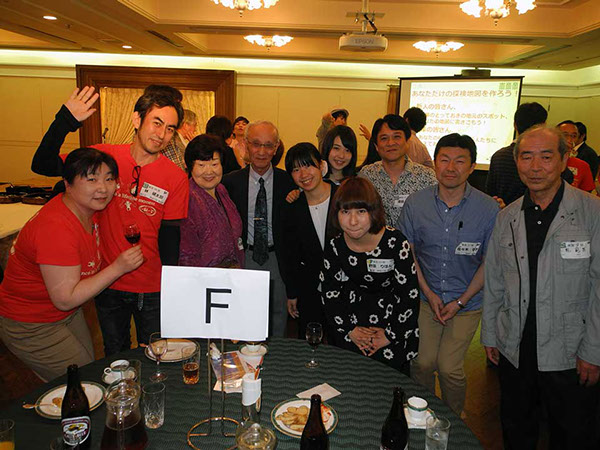 懇談の途中、出身中学校エリア別、現住所別と、テーブル変更を2度行いました。新同窓生たちは、最近の故郷の様子を懐かしがる先輩たちに、家を離れて上京してきたことを実感してくれたのではないかと思います。また、受付時に配布された「東京便利マップ」も参照しながら、各々のこれからの探検地図を作るべく、老若男女、様々な話題で盛り上がる様子が見られました。