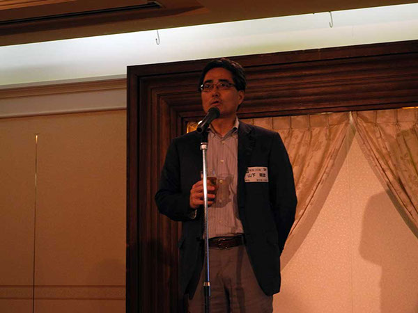 続いて山下事務局長(東高20期)より、歓迎の御挨拶とともに、返信はがきの宛先は「行」を「様」と書き換えるのだよ、と大人のアドバイスも交えつつ乾杯の御発声をいただき、全員で元気よく応じ、食事を楽しみながらの歓談の時間となりました。