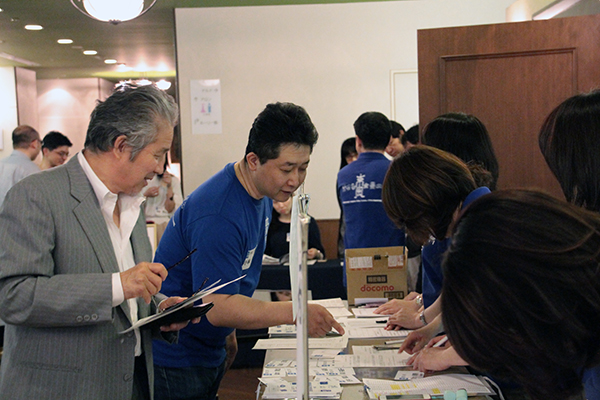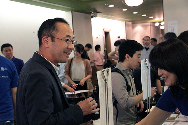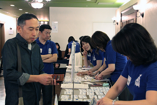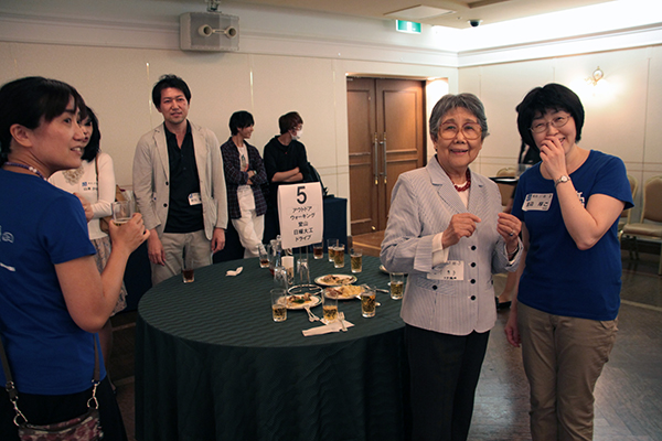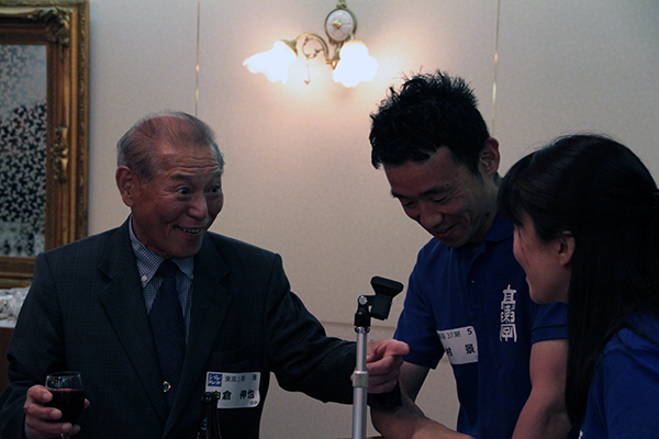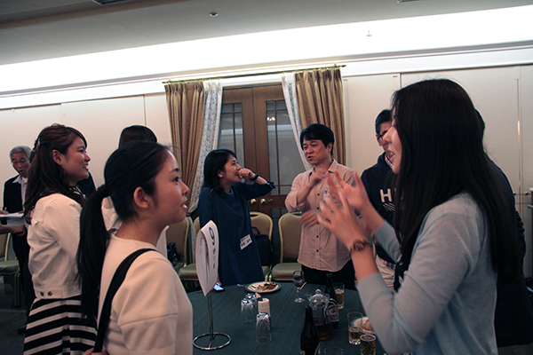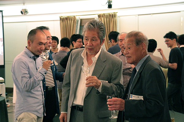 ここで共通の「趣味」をもつ同士で集まるという趣向のテーブル変更があり、再び歓談に入りました。初めて先輩と出会う新同窓生たちも共通の話題にすぐに打ち解けて、会場のあちらこちらで歓声が上がり、賑やかに盛り上がっていました。