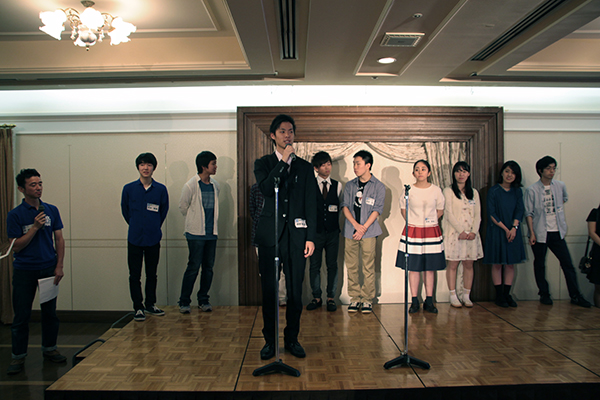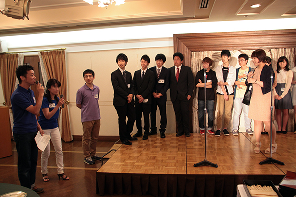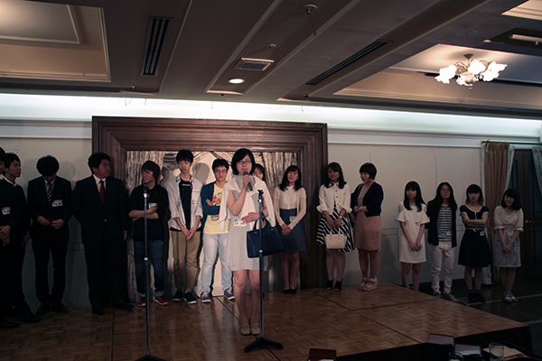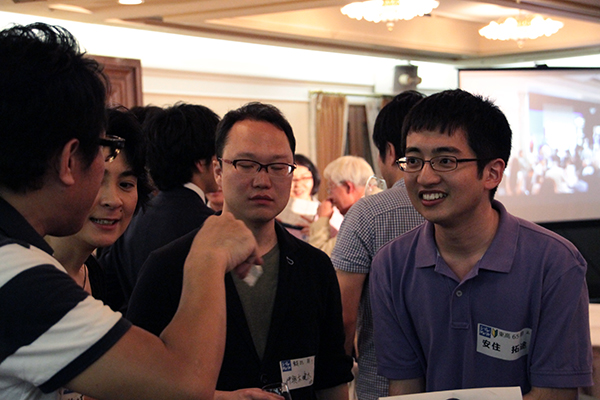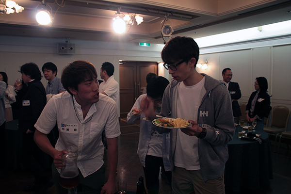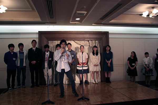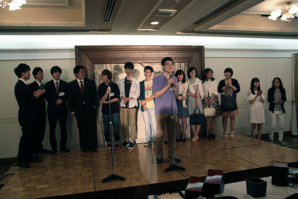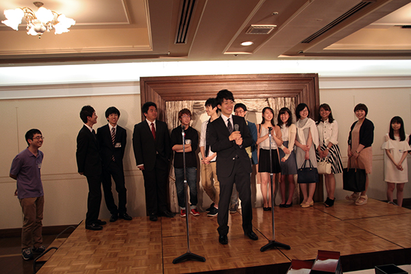 歓談が一服したところで、新同窓生からの自己紹介(後半)がありました。前半と同じように、新同窓生たちを囲んで諸先輩が温かい眼差しで見守り、前途洋々たる若者たちの話に耳を傾けていました。
