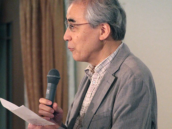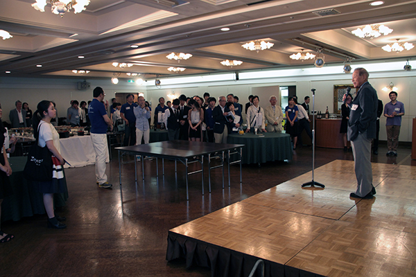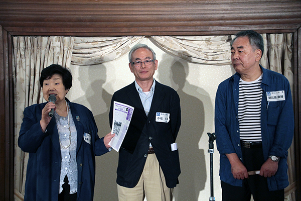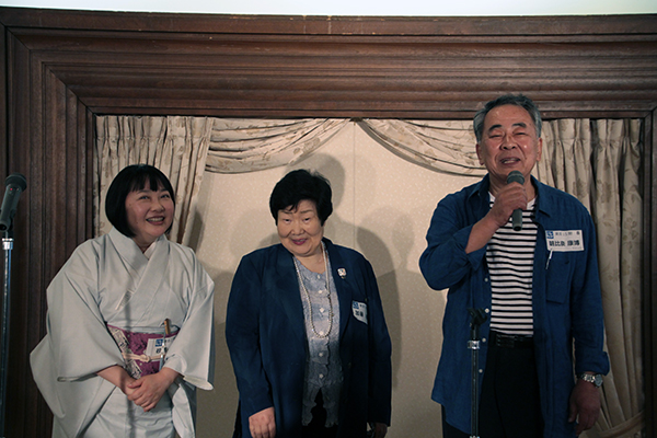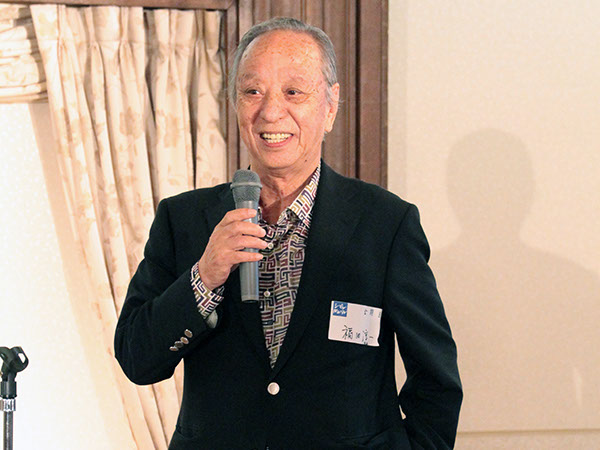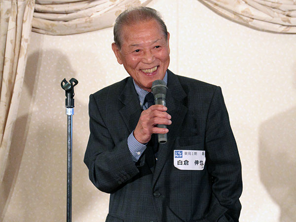 名残り惜しくも閉会に近づき、白倉伸也さん(東高1期)から締めのお言葉をいただきました。「世界も日本も大変な時代だが、若い世代にぜひともがんばってほしい、そのためにはよく勉強することが大切だ」との激励が印象的でした。