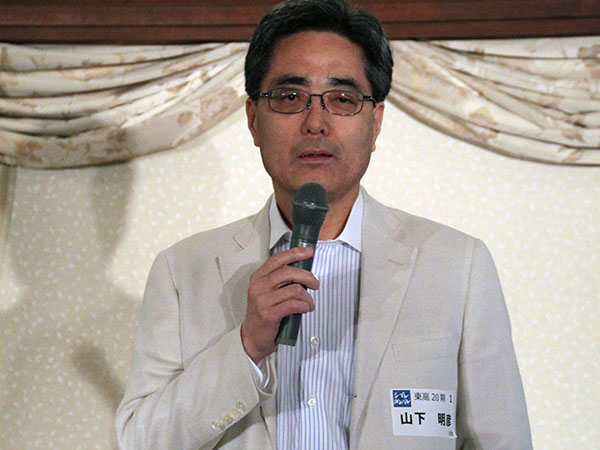 続いて山下事務局長(東高20期)より、新同窓生歓迎の御挨拶とともに、乾杯の御発声をいただきました。全員で元気よく和やかに唱和して乾杯し、いよいよ食事を楽しみながらの歓談の時間となりました。