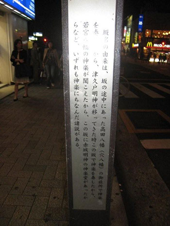 再び神楽坂を登り、島村抱月・松井須磨子の芸術座跡を見学、かつての寺町の面影が残る通りを歩き尾崎紅葉旧居跡へ。渡辺さんから『金色夜叉』が紅葉自身の体験をもとに書いたものという説明を聞き、あらためて神楽坂が明治・大正・昭和の文学に縁の深い地ということに気付きました。