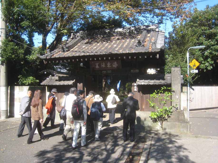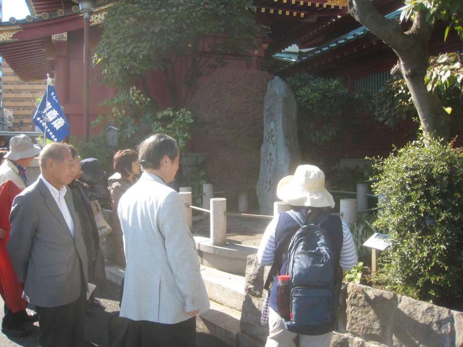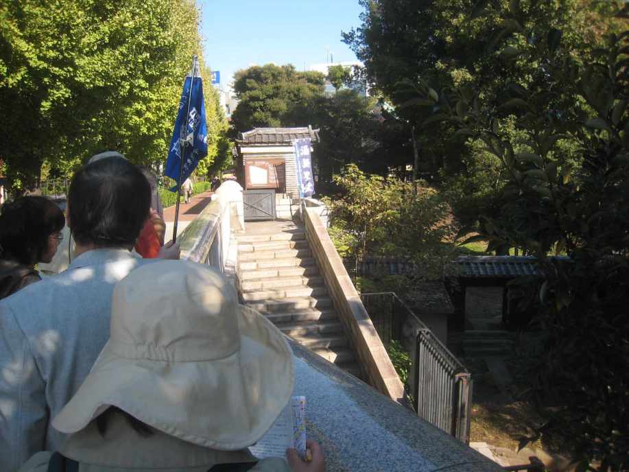 神田明神から坂を下り、蔵前橋通りを渡り、また坂を登って湯島天神へ。学問の神様菅原道真を祀る神社の境内では、菊まつりが催されていました。泉鏡花の『婦系図』「湯島の境内」でも有名な湯島天神をあとにして、春日通を歩きその名のもとになった春日局が眠る麟祥院へ。春日局は3代将軍家光の乳母で、明智光秀の重臣・斉藤利三の娘であり、大奥の礎を築いた人物です。その墓の前には子供たちである稲葉家の墓を従え、世の中を見通せるようにと四方に穴が開いています。