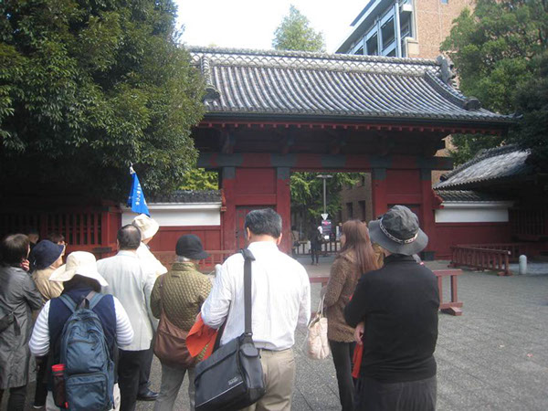 都会の真ん中とは思えない静かな佇まいの麟祥院から、東京大学へ。赤門から構内へ入り、加賀前田百万石の大名庭園の面影を残す三四郎池を眺め、安田講堂へ向かい、そこで記念撮影。昼食は本郷三丁目の福園酒家で、リーズナブルながら美味しい中華とアルコールを満喫しました。