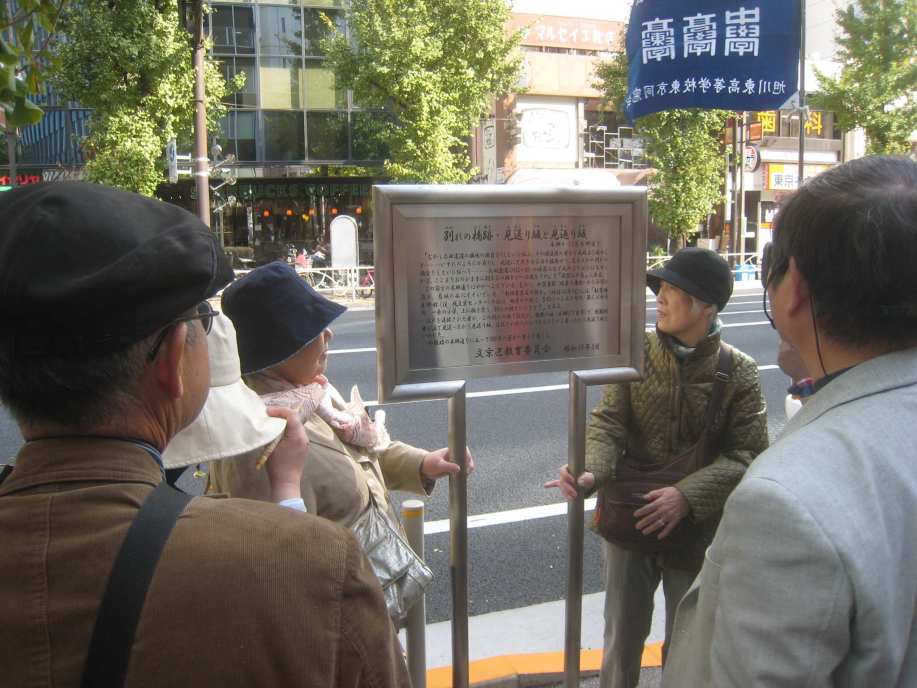 11月14日、旭川東高等学校東京同窓会第9回「さんぽを楽しむ会」は、「お茶の水・湯島・本郷」コースを、東高1期から27期までの総勢15名の参加で実施しました。当日はさわやかな秋晴れのさんぽ日和に恵まれました。今回も第3回より続いてわかりやすい説明が好評の郷土史家渡辺功一さんのご案内です。