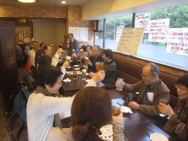 1万歩の歴史さんぽに満足顔で”乾杯”