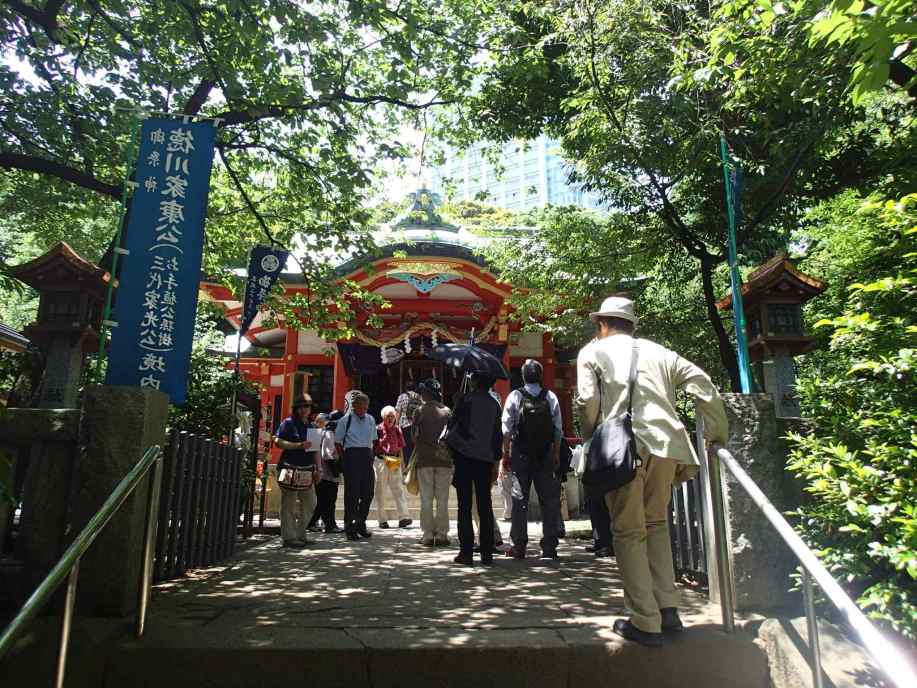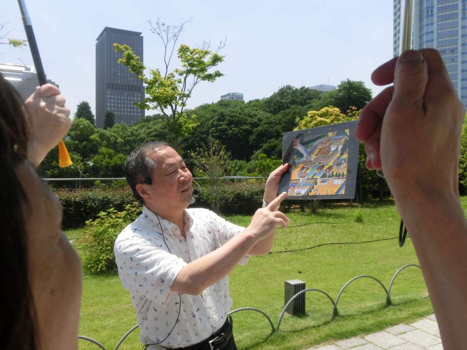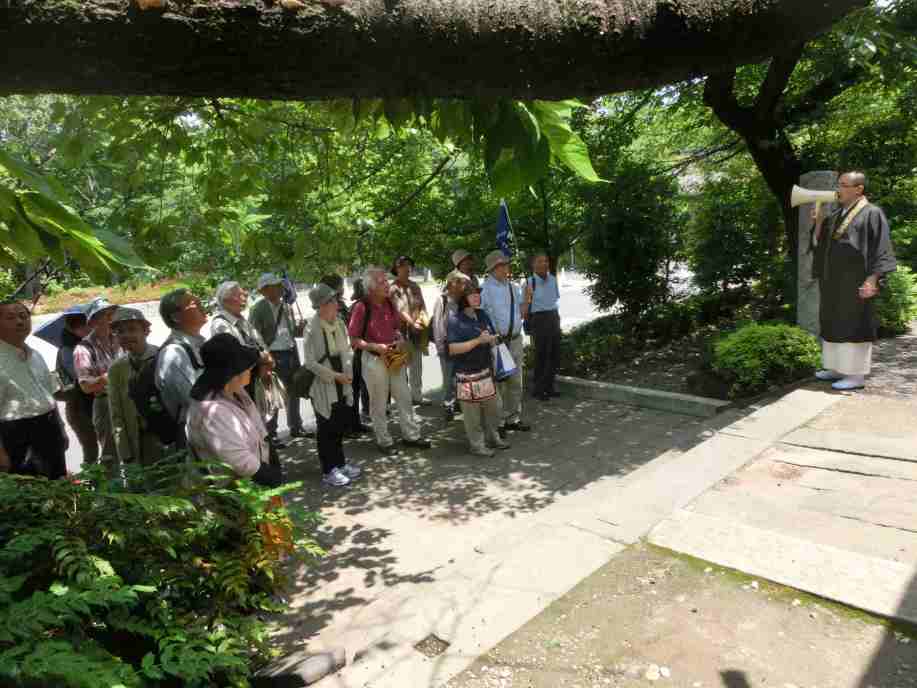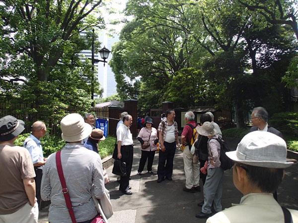 5月28日、旭川東高等学校東京同窓会第12回「さんぽを楽しむ会」は、「増上寺・旧芝離宮恩賜庭園周辺」の文学歴史散歩を、東高1期から27期までの総勢19名の参加で実施しました。当日は初夏のやや汗ばむ陽気ではありましたが、日陰を吹く風がさわやかなさんぽ日和でした。今回も第3回より続いてわかりやすい説明が好評の郷土史家渡辺功一さんのご案内です。