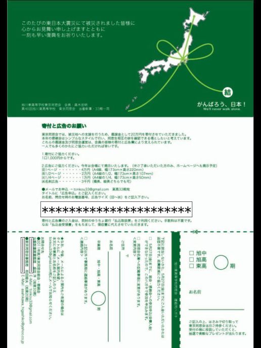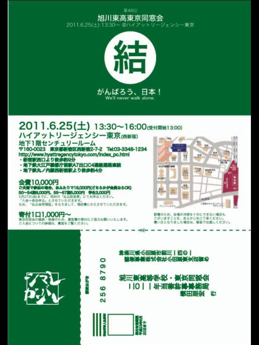 未曽有の大災害、東日本大震災に被災して間もない時節ですが、こうした時にこそ同窓生が集い、心と心の絆を”結ぶ”場として今年も東京同窓会を開催いたしします。