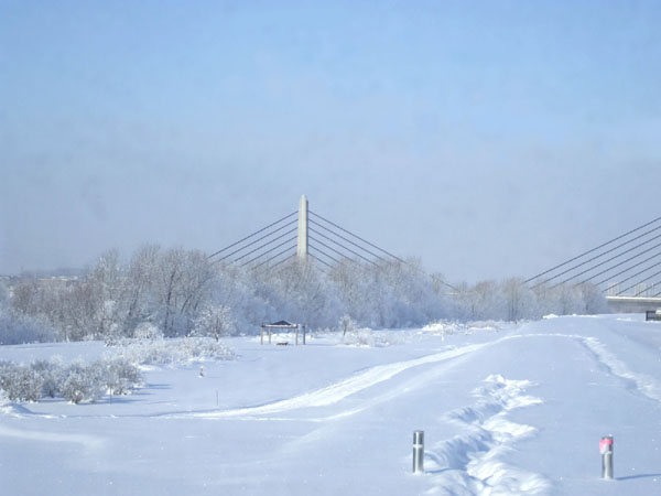 vol.43 忠別川河畔 奥に見えるのがツインハープ橋です。