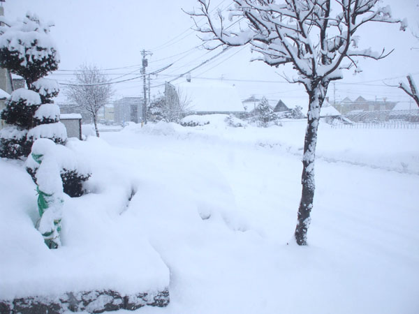 写真は、4月1日に雪が降った時の景色です。