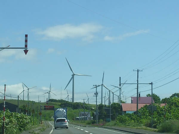羽幌に入ると、国道沿いには風力発電の風車がぎっしりと並び、壮観な感じがします。空は快晴で、天売島、焼尻島はもちろんのこと、遠方に利尻富士がくっきりと見えました。富士山と似た、形の良い綺麗な山です。